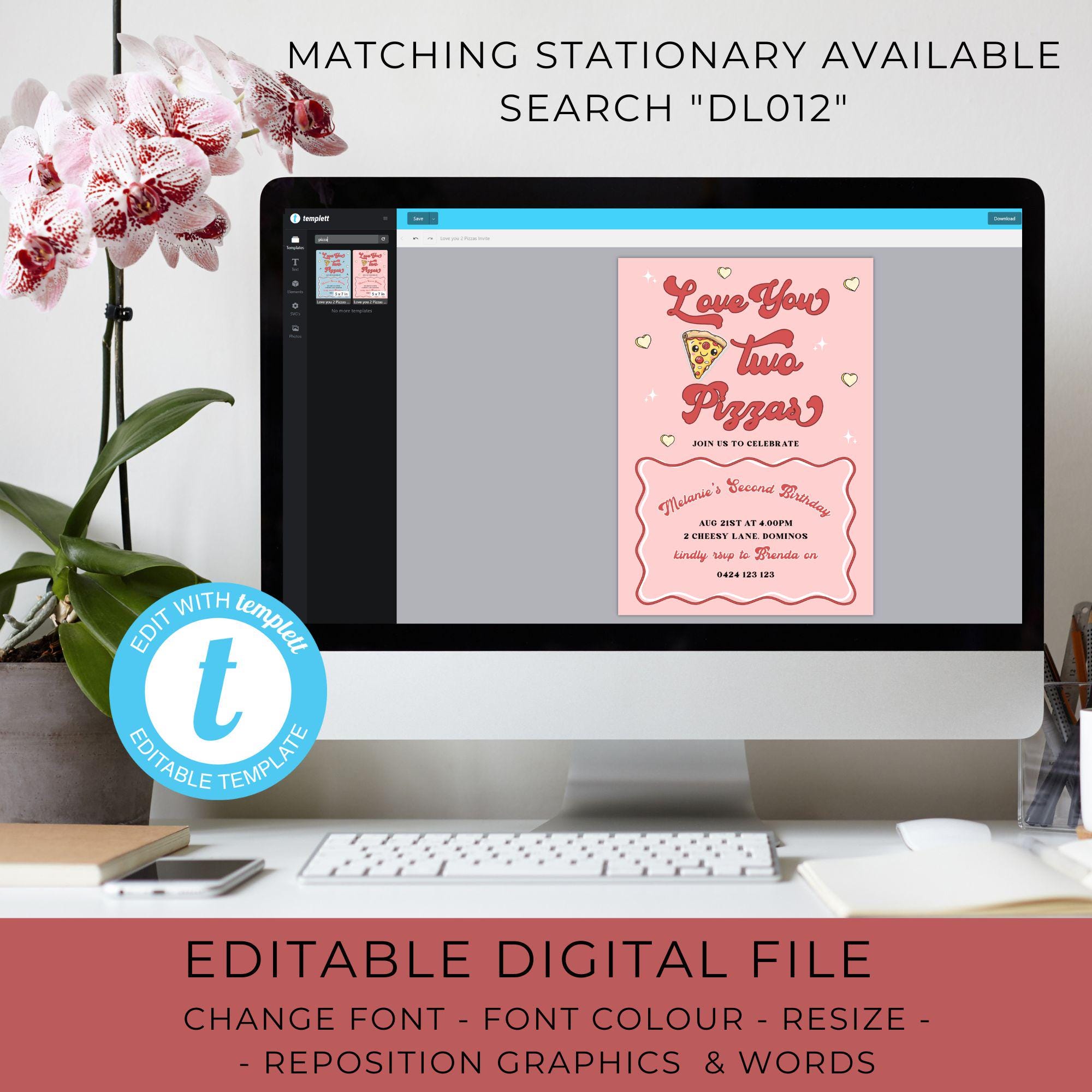 Editable Pizza Table Sign Template Digital Download Retro Table