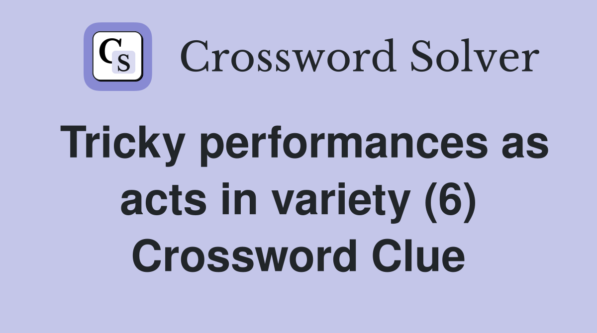 Tricky performances as acts in variety (6) Crossword Clue Answers