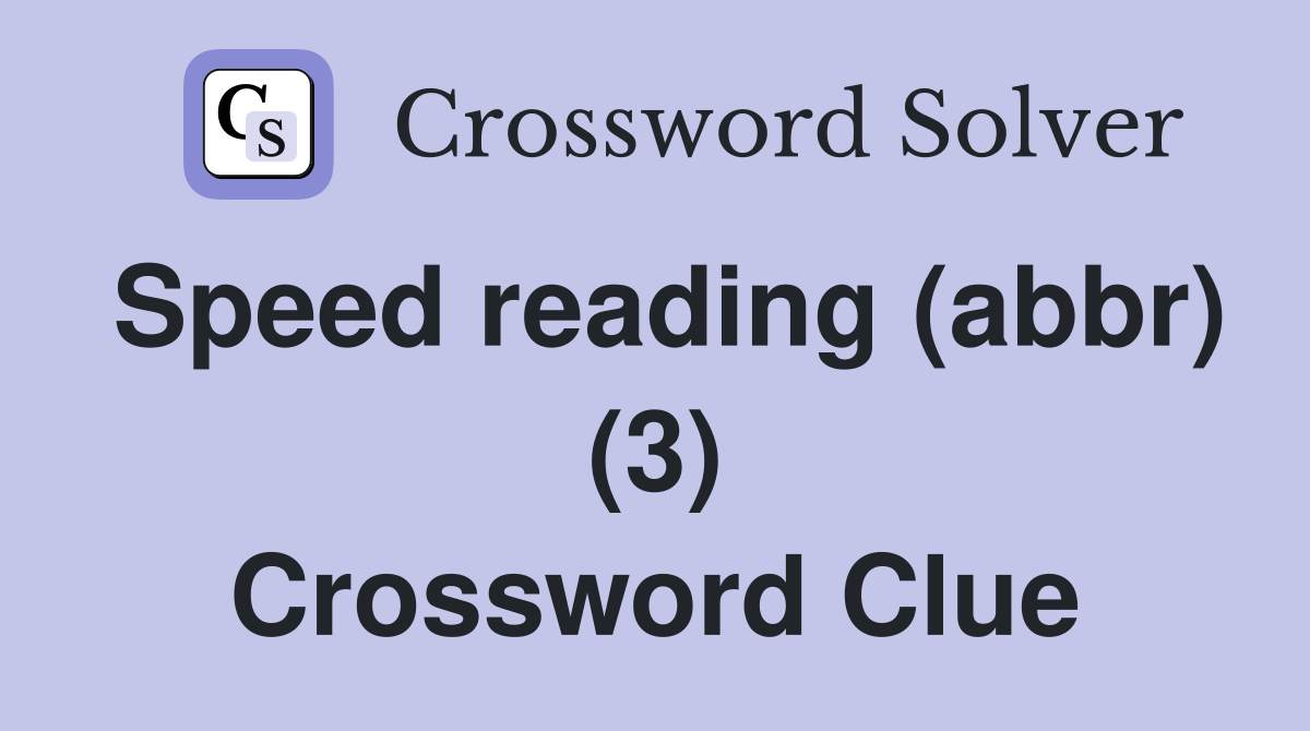 Speed reading (abbr) (3) Crossword Clue Answers Crossword Solver
