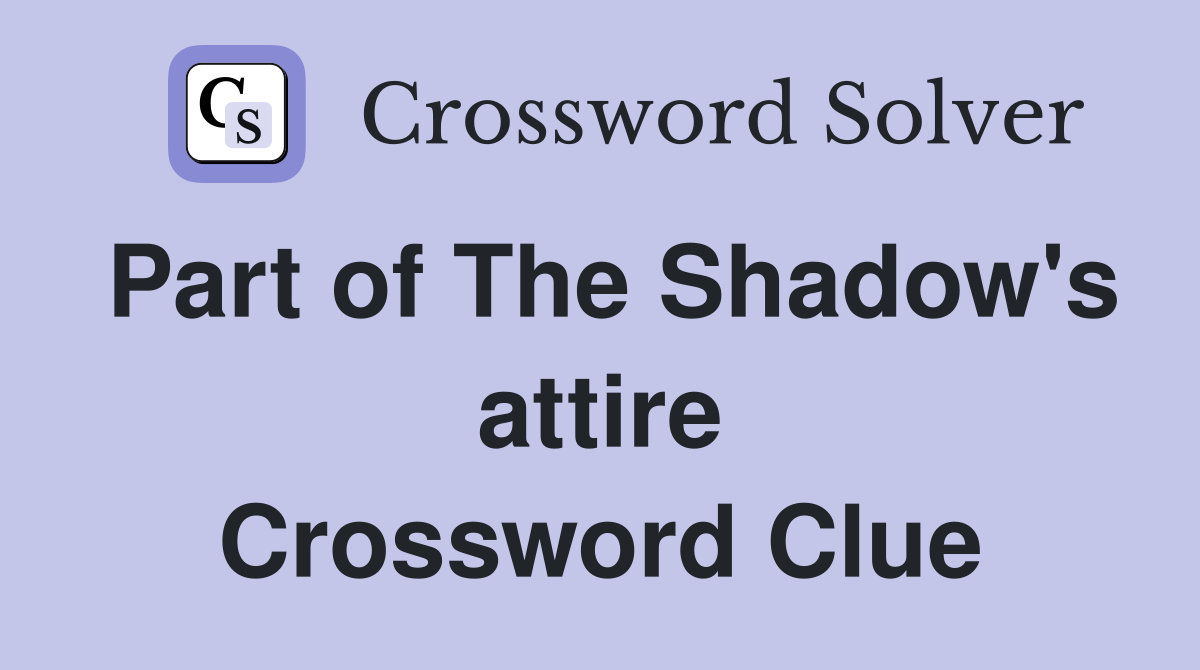 Part of The Shadow s attire Crossword Clue Answers Crossword Solver