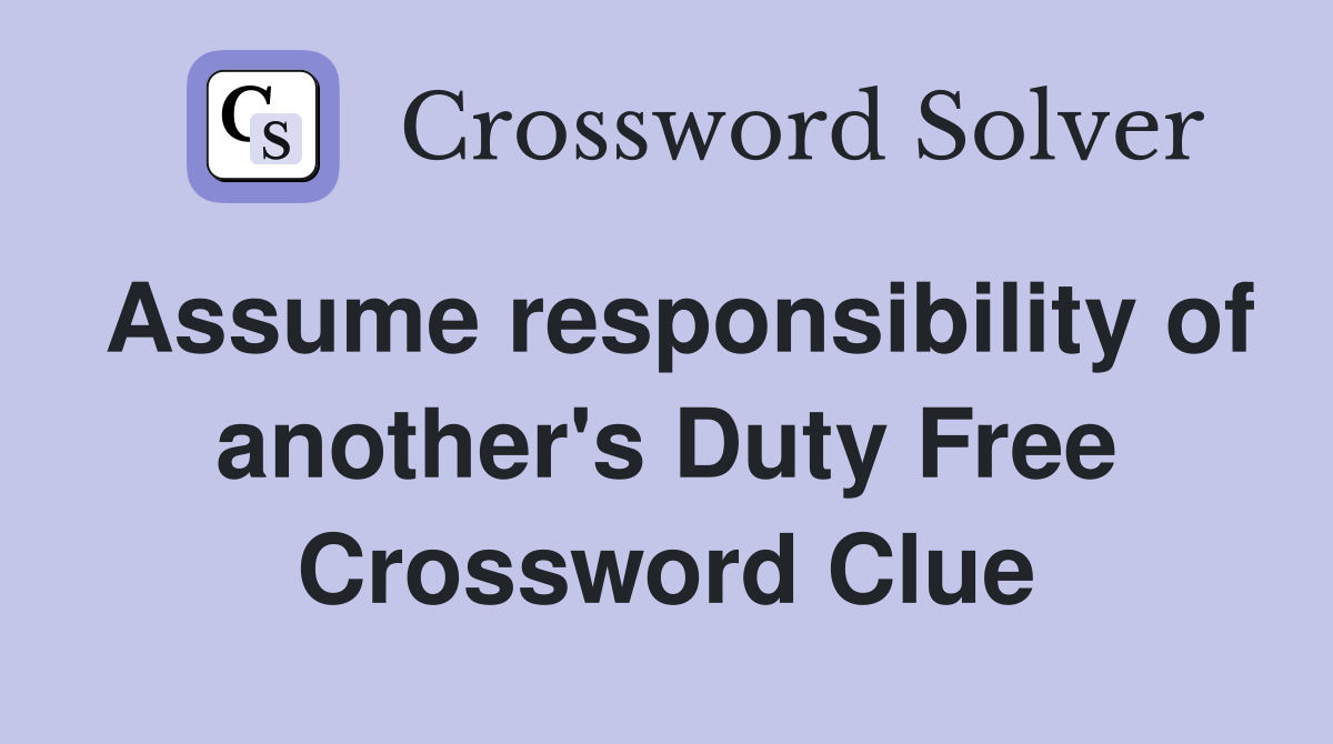 Assume responsibility of another #39 s Duty Free Crossword Clue Answers