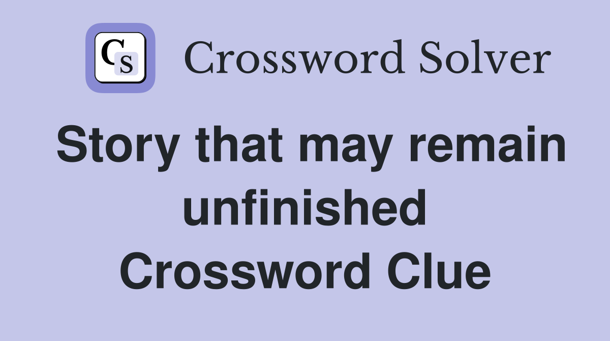 Story that may remain unfinished Crossword Clue Answers Crossword
