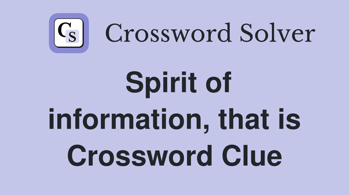 Spirit of information that is Crossword Clue Answers Crossword Solver
