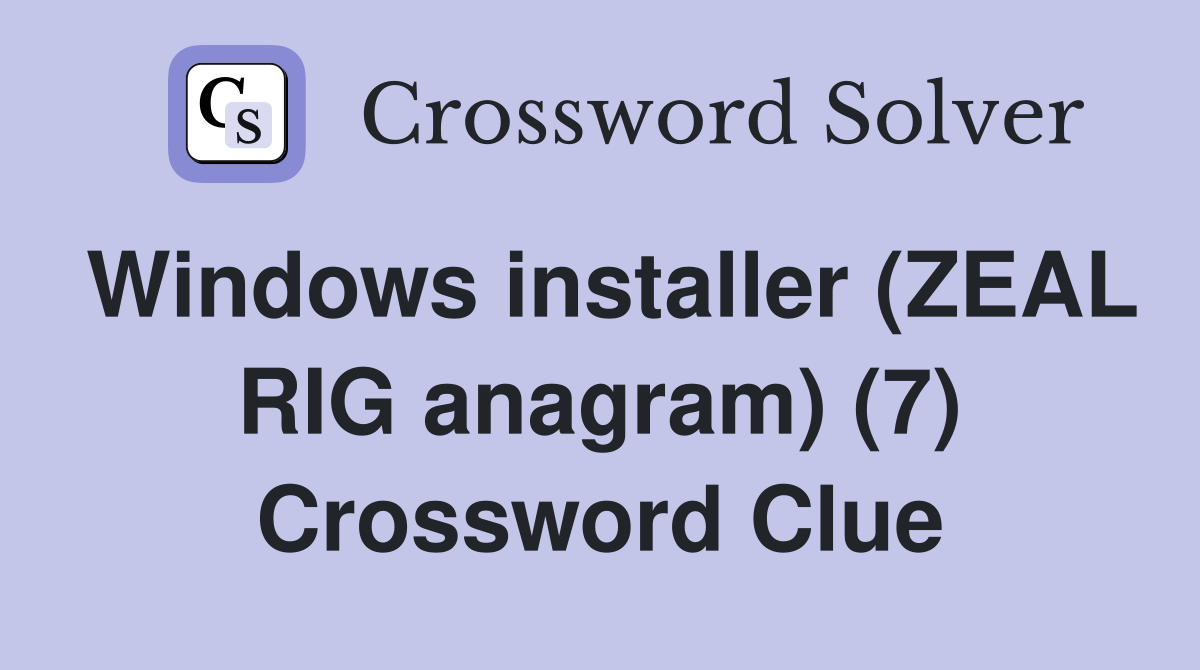 Windows installer (ZEAL RIG anagram) (7) Crossword Clue Answers