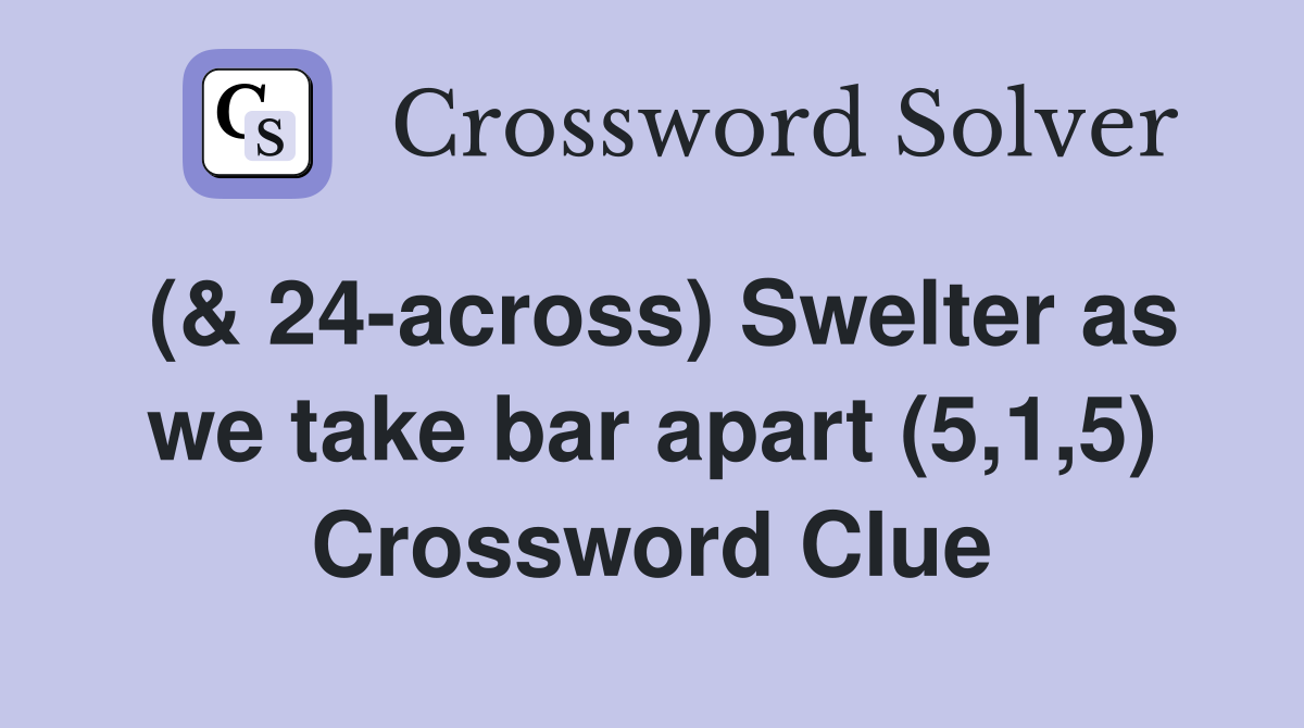 ( 24 across) Swelter as we take bar apart (5 1 5) Crossword Clue