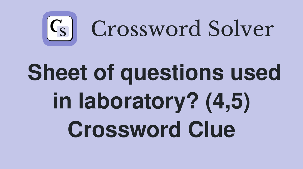 Sheet of questions used in laboratory? (4 5) Crossword Clue Answers