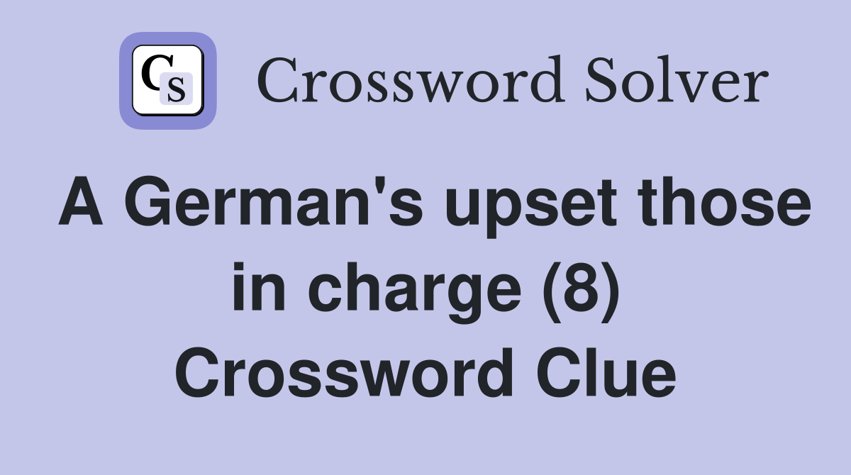 A German #39 s upset those in charge (8) Crossword Clue Answers