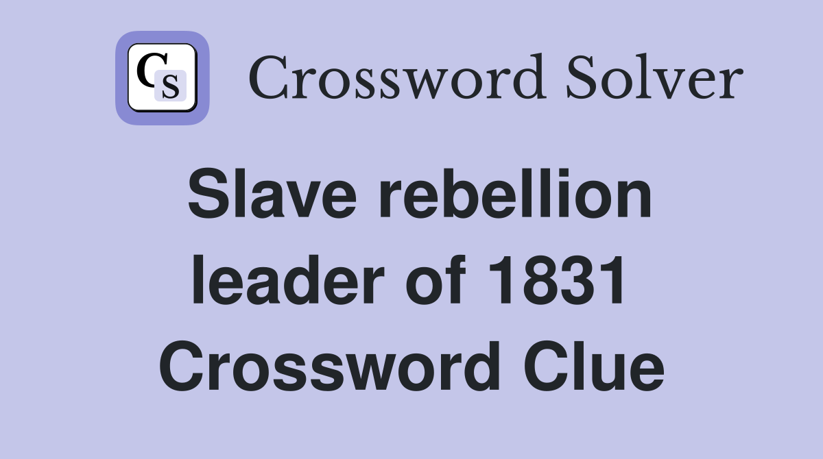 Slave rebellion leader of 1831 Crossword Clue Answers Crossword Solver