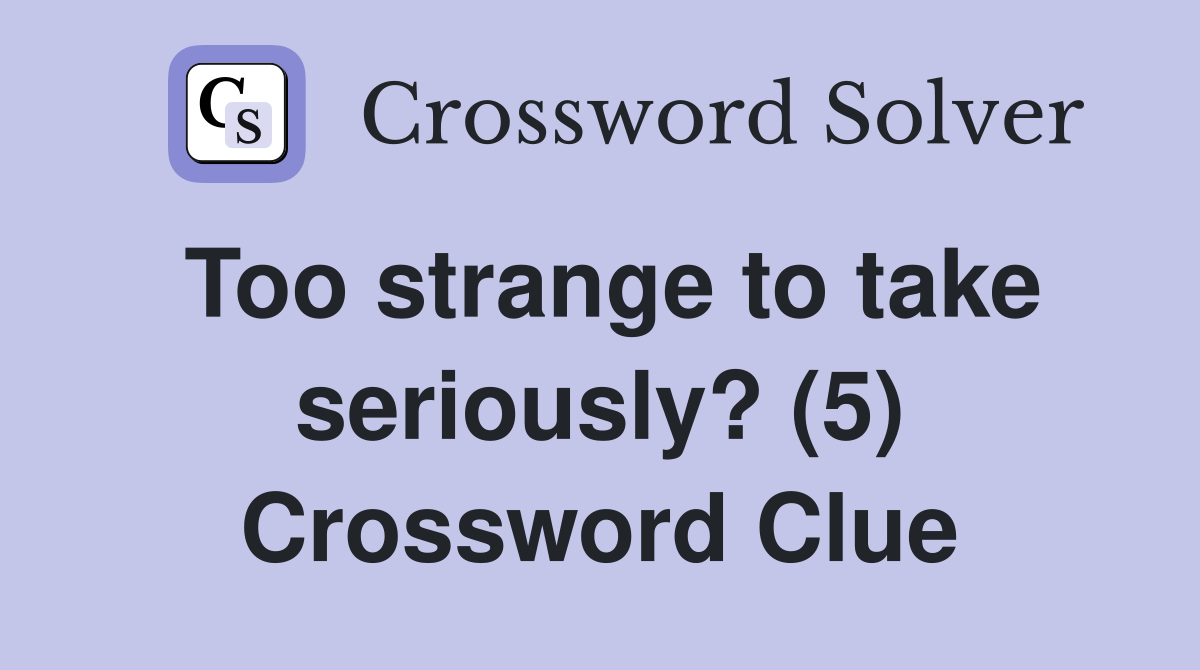 Too strange to take seriously? (5) Crossword Clue Answers Crossword