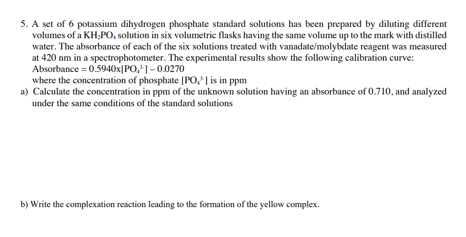 Solved 5 A set of 6 potassium dihydrogen phosphate standard Chegg com