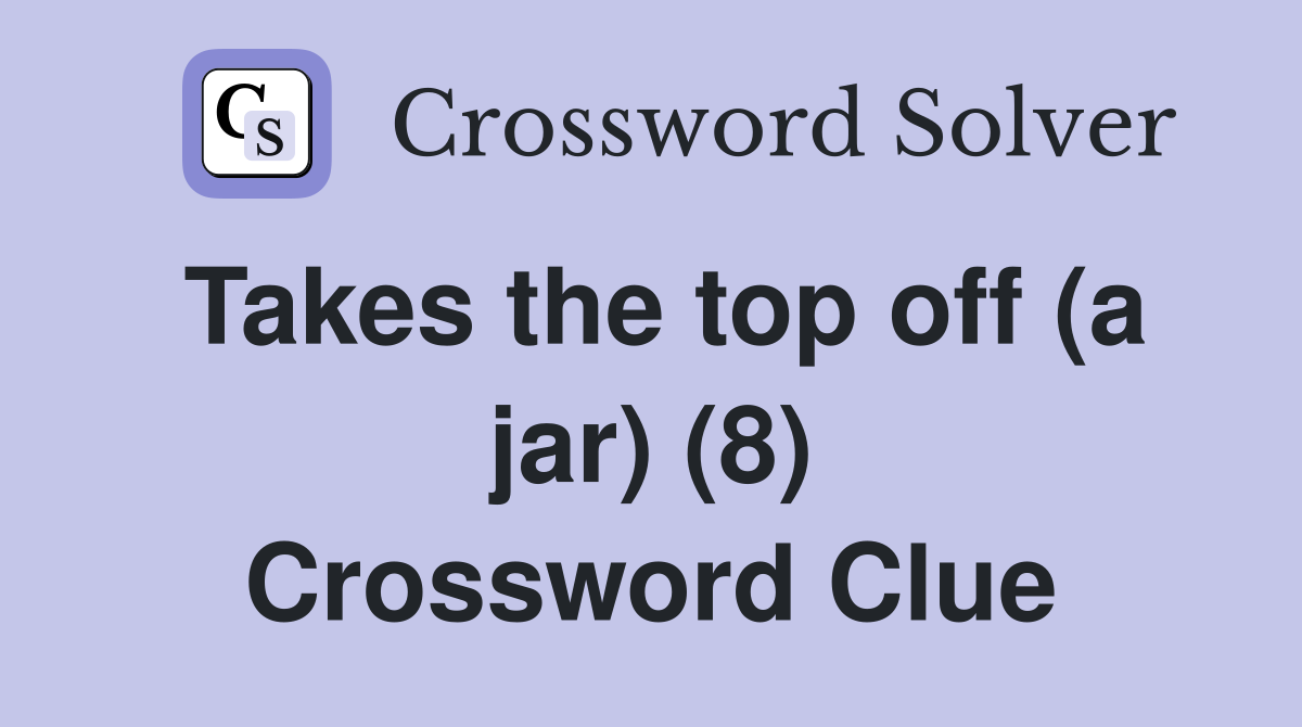Takes the top off (a jar) (8) Crossword Clue Answers Crossword Solver