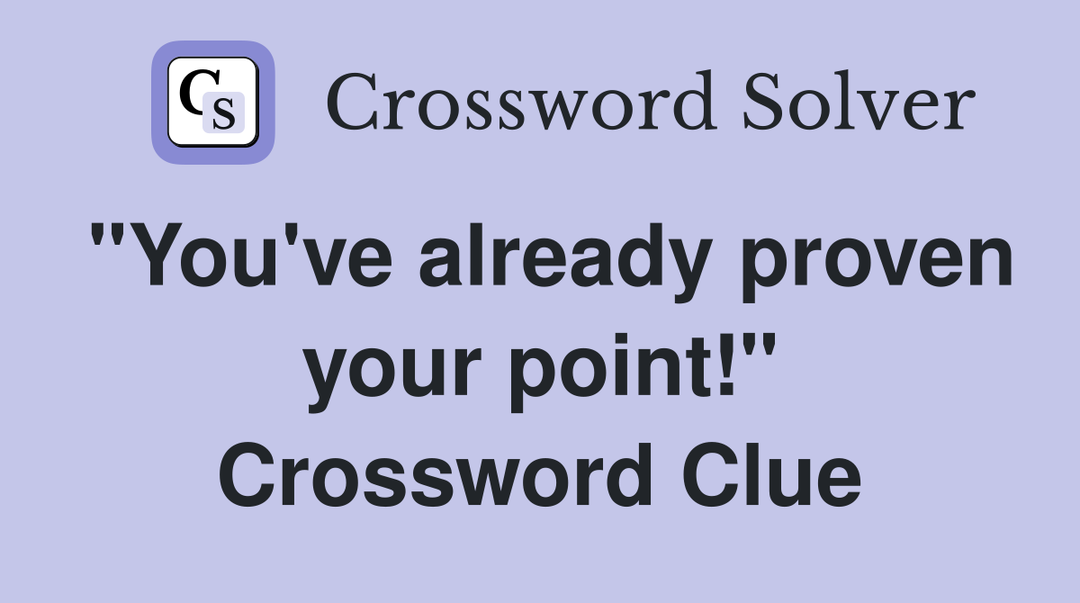 quot You #39 ve already proven your point quot Crossword Clue Answers