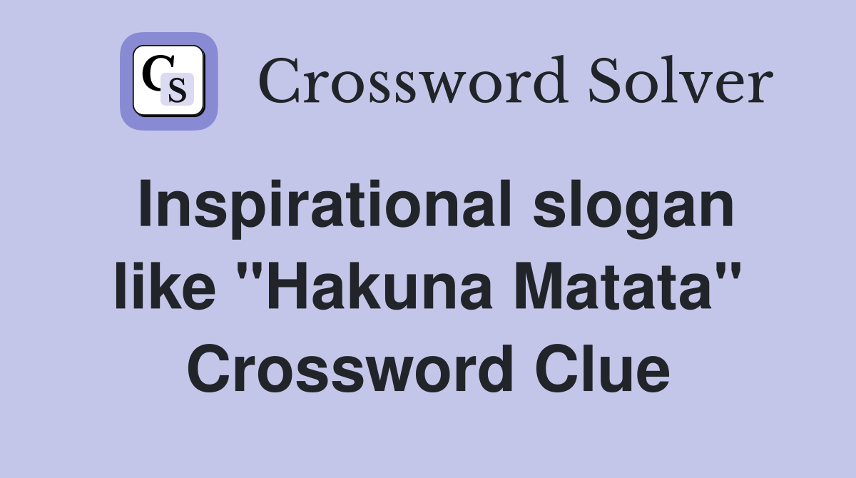 Inspirational slogan like quot Hakuna Matata quot Crossword Clue Answers
