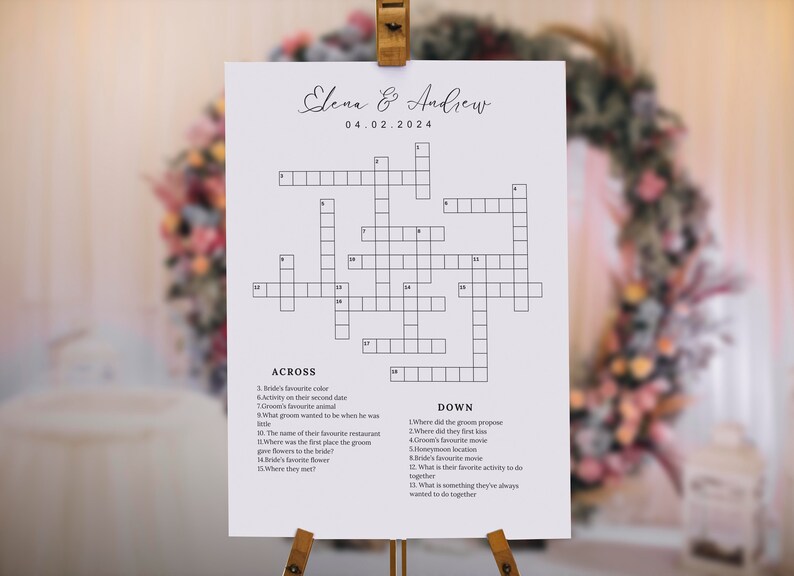 Personalized Wedding Crossword Puzzle Custom Wedding Activity Lawn