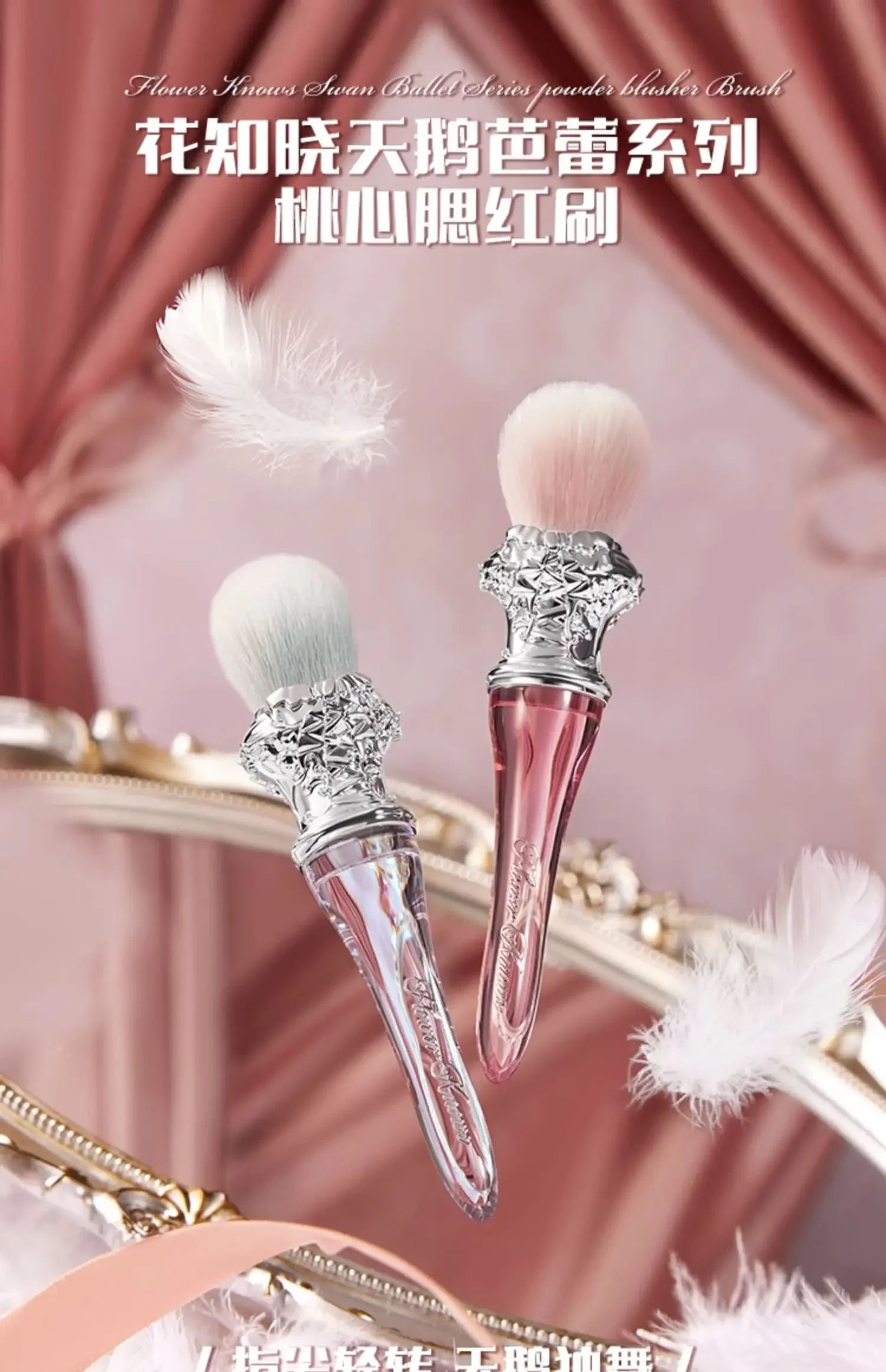Beautiful Girl with a manicure takes powder from a palette with a brush