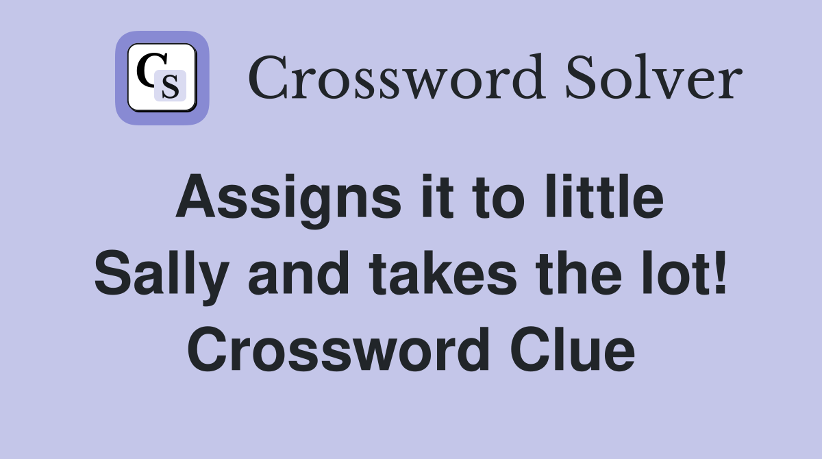 Assigns it to little Sally and takes the lot Crossword Clue Answers