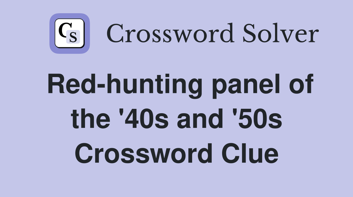 Red hunting panel of the #39 40s and #39 50s Crossword Clue Answers