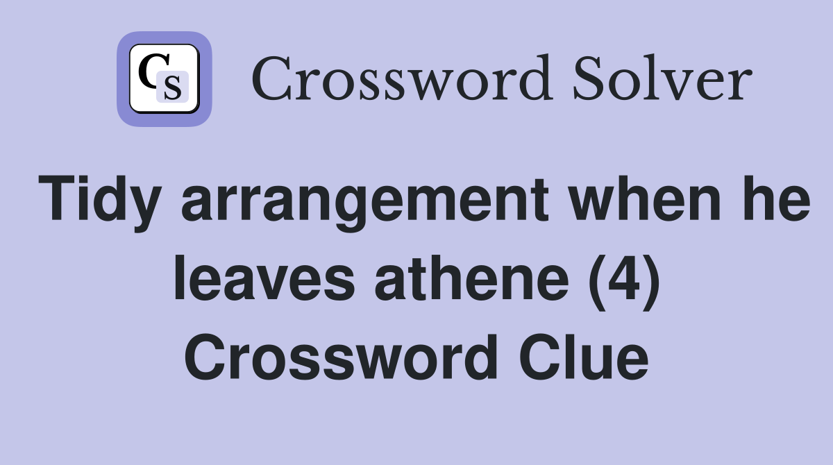Tidy arrangement when he leaves athene (4) Crossword Clue Answers