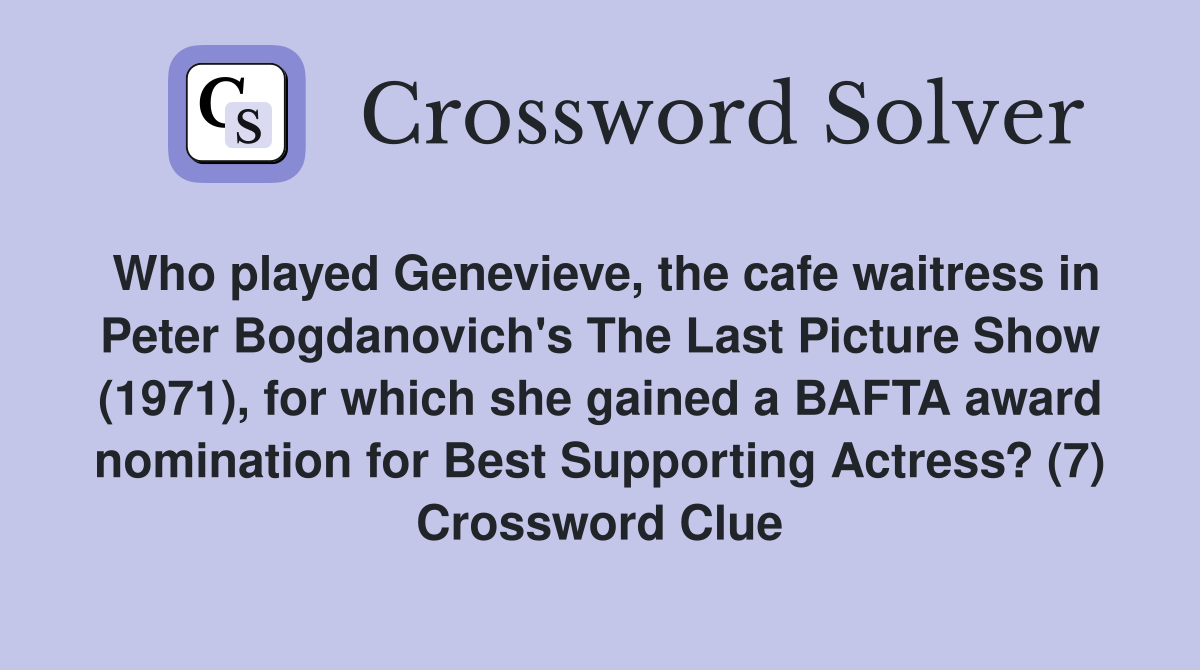 Who played Genevieve the cafe waitress in Peter Bogdanovich #39 s The Last