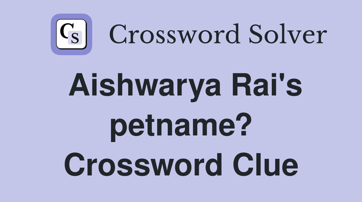 Aishwarya Rai #39 s petname? Crossword Clue Answers Crossword Solver