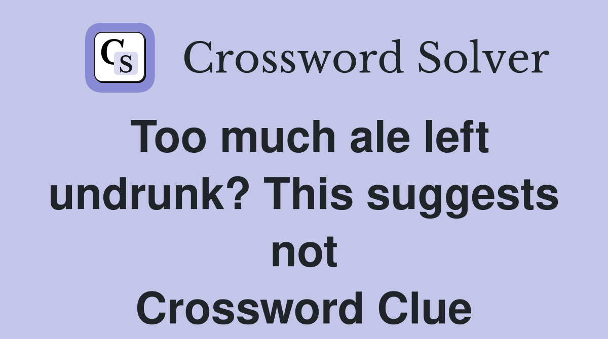Too much ale left undrunk? This suggests not Crossword Clue Answers