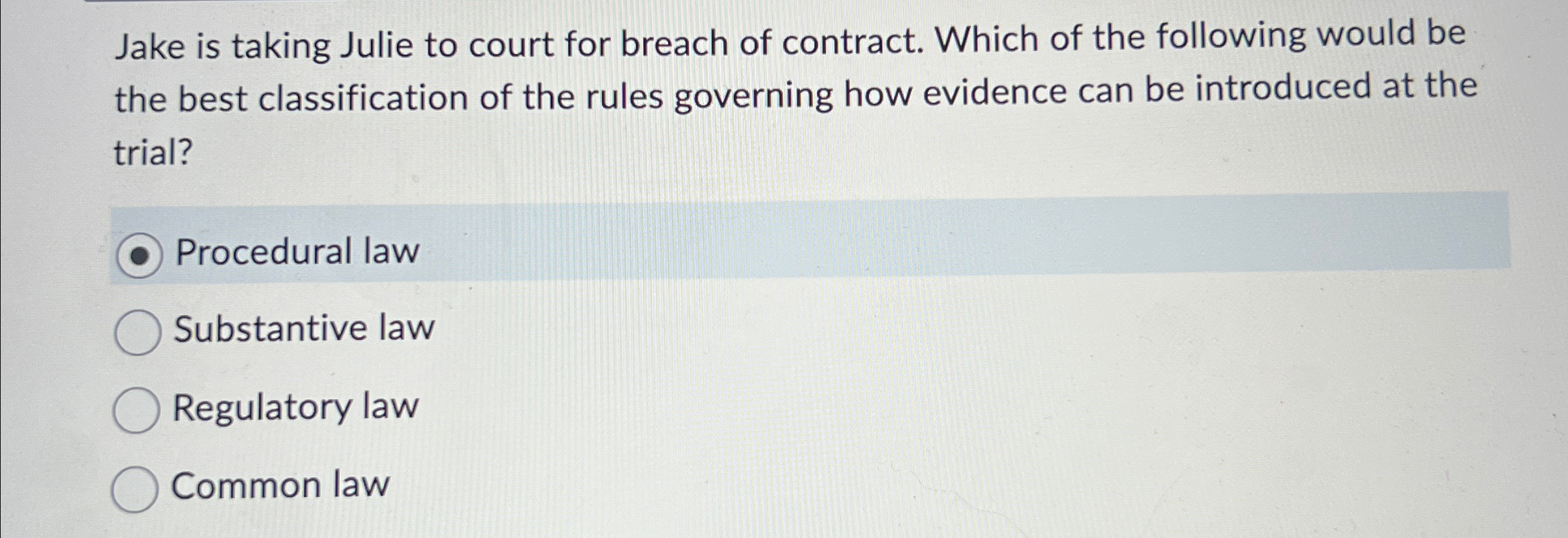 Solved Jake is taking Julie to court for breach of contract Chegg com