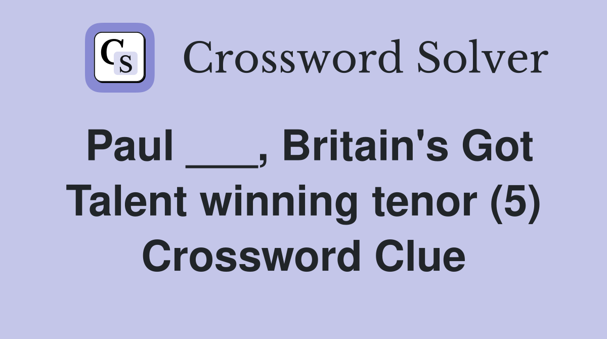 Paul Britain s Got Talent winning tenor (5) Crossword Clue