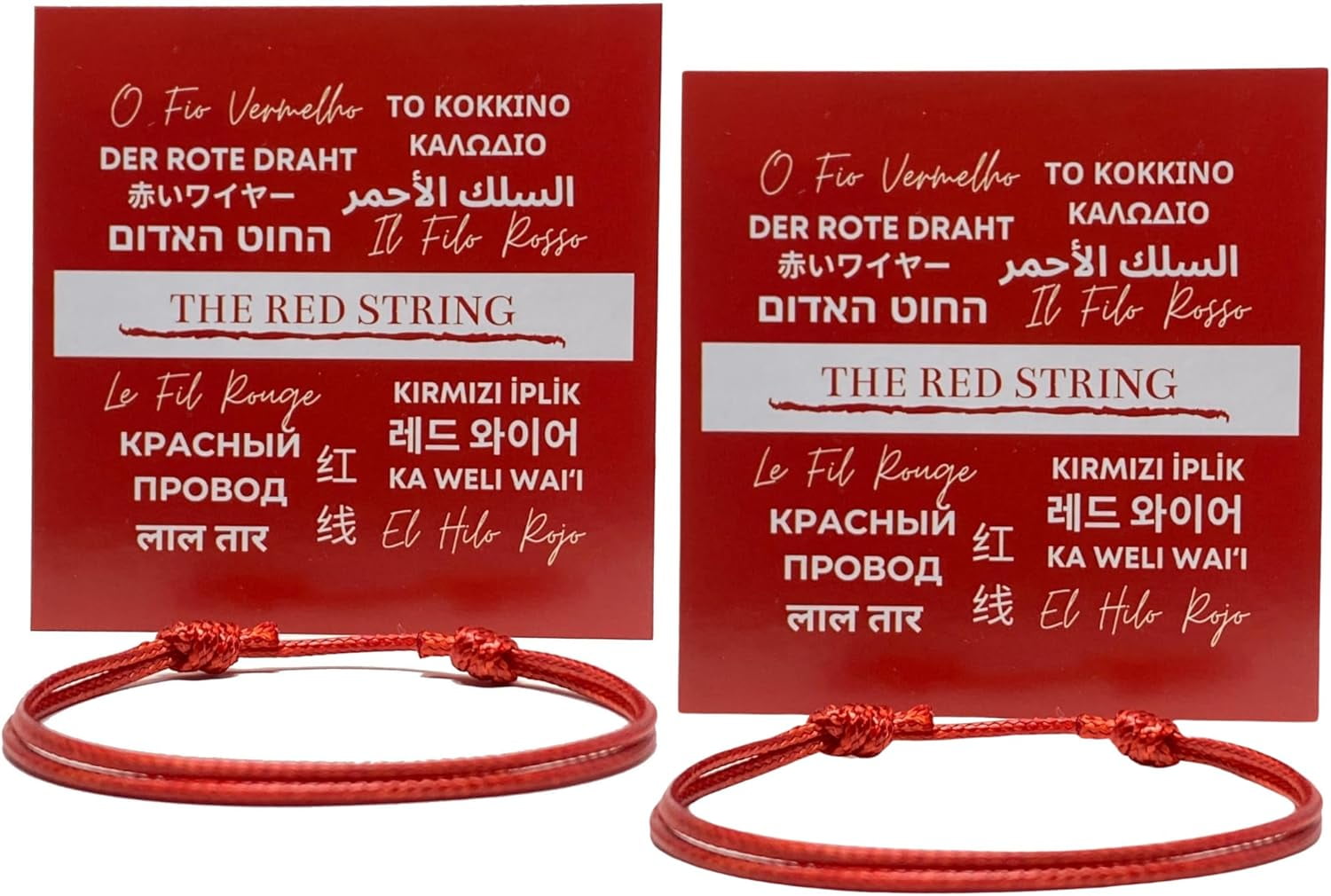 (2 pack) Red wax nylon cord adjustable Bracelet for men women Unisex