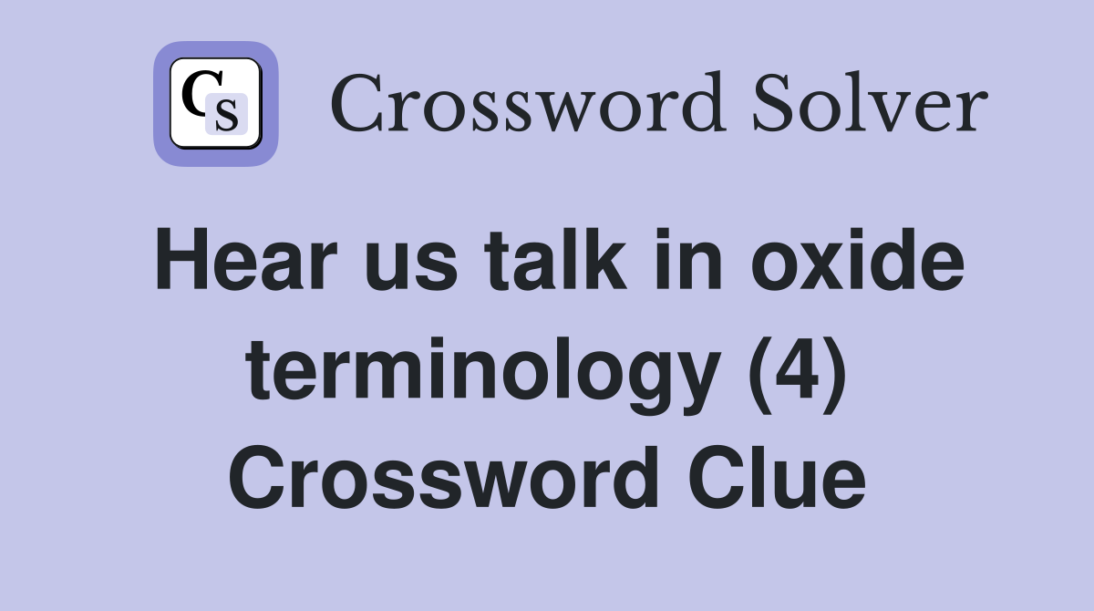 Hear us talk in oxide terminology (4) Crossword Clue Answers