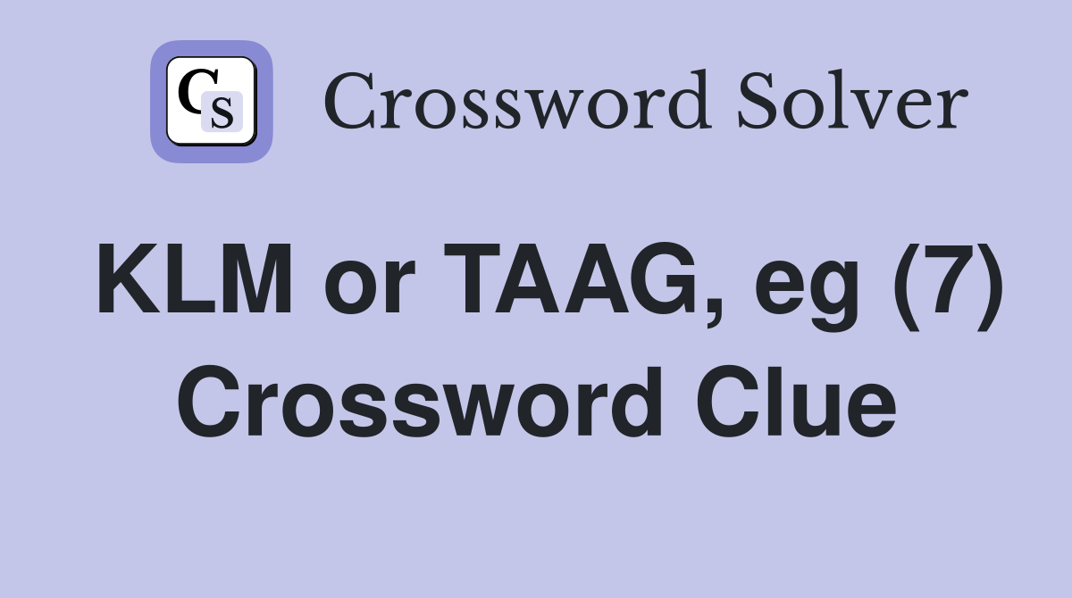 KLM or TAAG eg (7) Crossword Clue Answers Crossword Solver