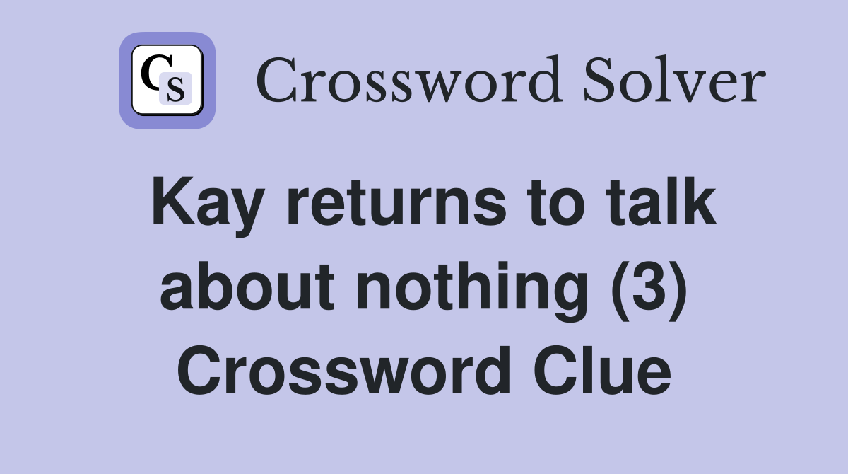 Kay returns to talk about nothing (3) Crossword Clue Answers