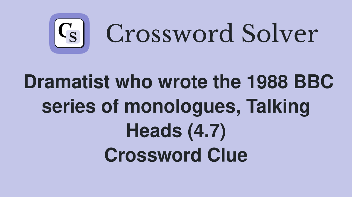 Playwright who created TV drama series Talking Heads (4 7) Crossword