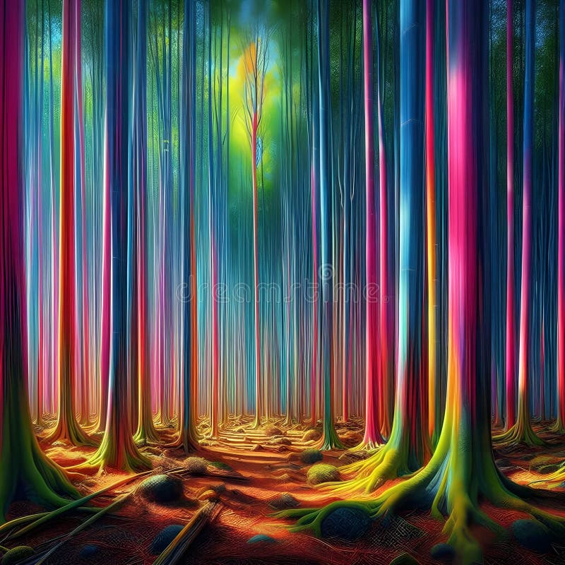 Image of a Forest with Extremely Thin Tall Trees Magically Dense and