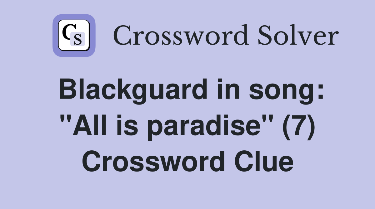 Blackguard in song: quot All is paradise quot (7) Crossword Clue Answers