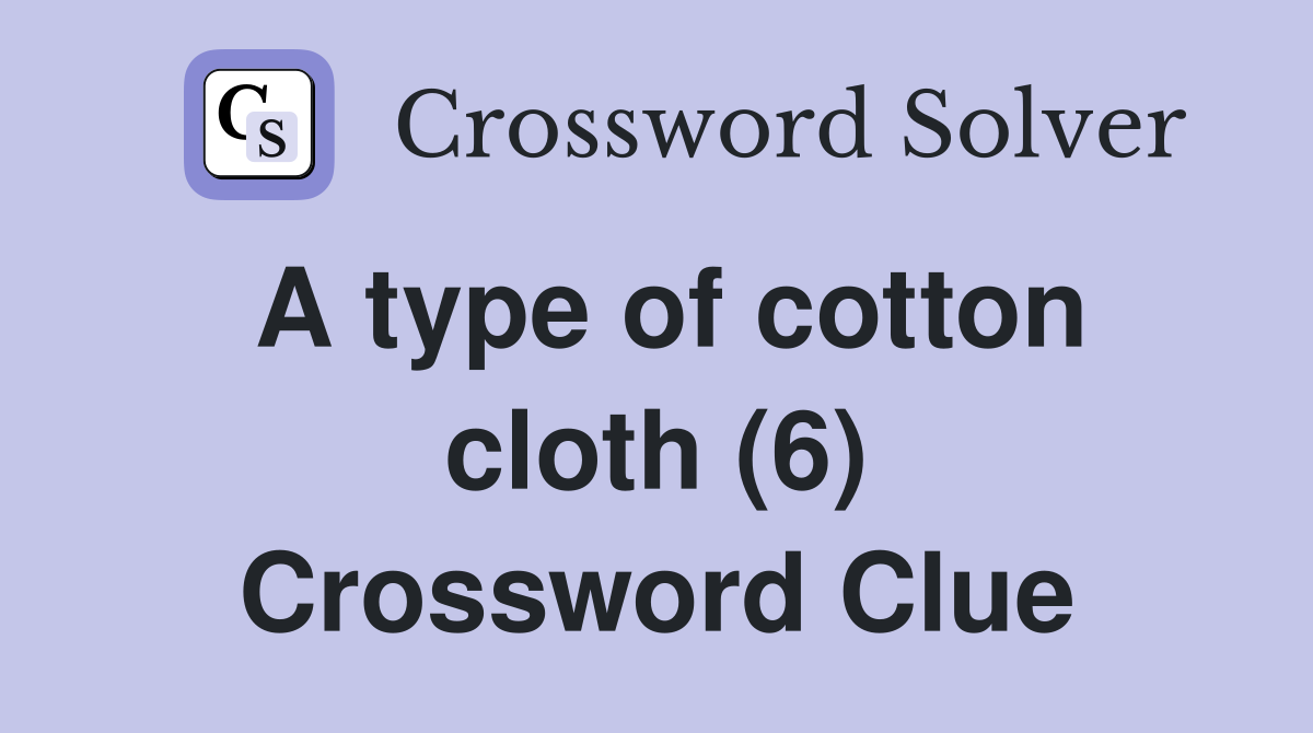 A type of cotton cloth (6) Crossword Clue Answers Crossword Solver