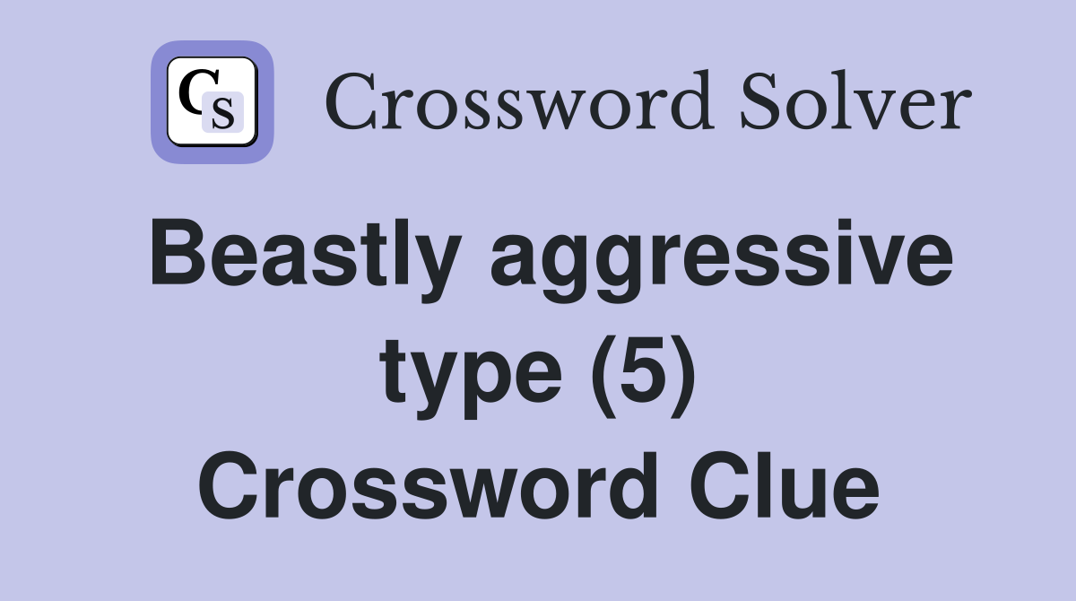 Beastly aggressive type (5) Crossword Clue Answers Crossword Solver