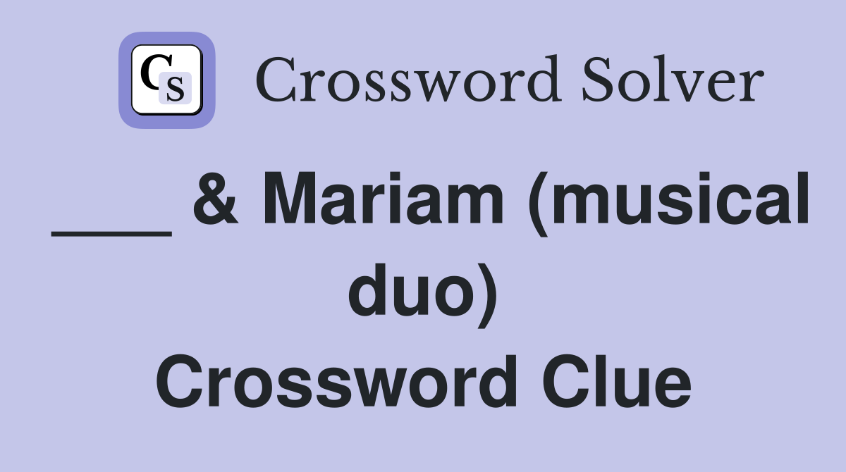 Mariam (musical duo) Crossword Clue Answers Crossword Solver