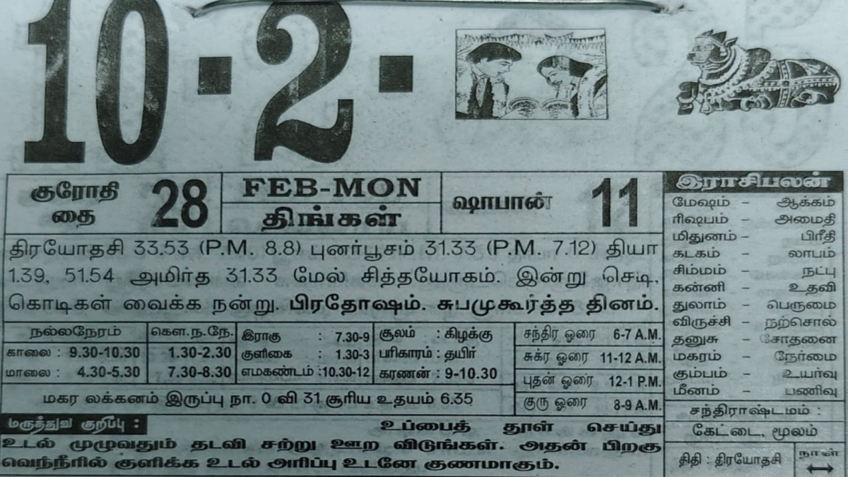 Tamil Calendar: தமிழ் காலண்டர் 2025 பிப்ரவரி 10ம் தேதி: இன்று நல்ல