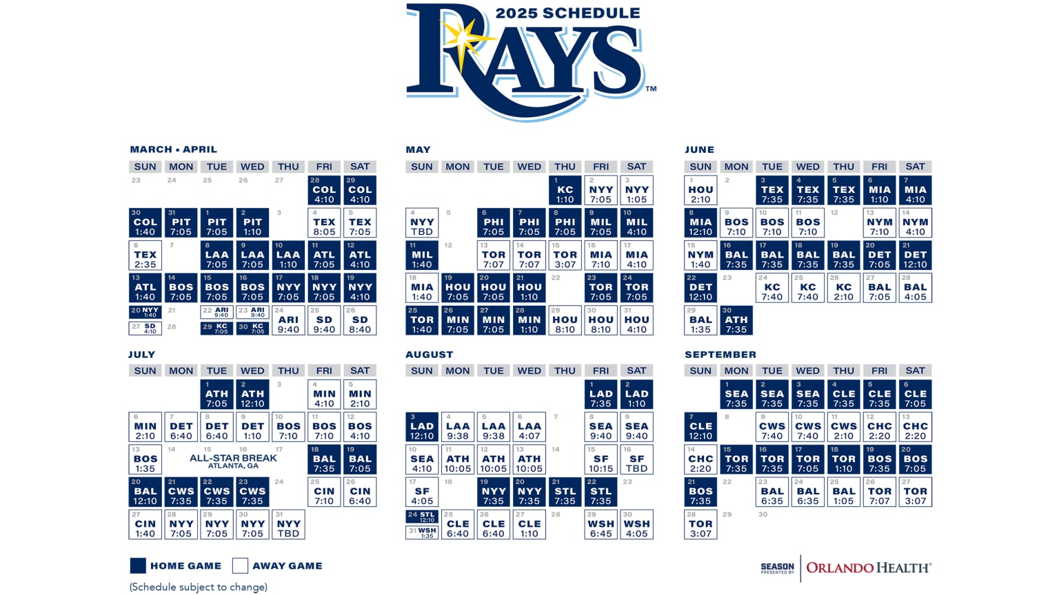 Printable 2024 Tampa Bay Rays Schedule