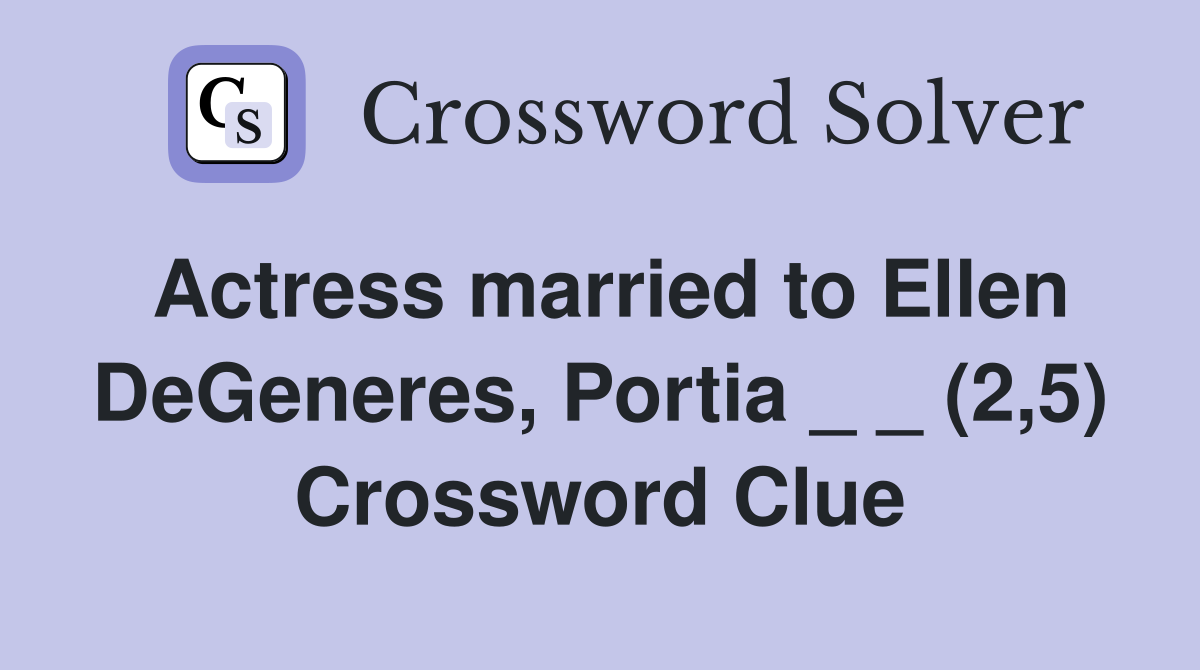 Actress married to Ellen DeGeneres Portia (2 5) Crossword Clue