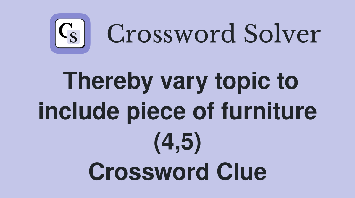 Thereby vary topic to include piece of furniture (4 5) Crossword Clue