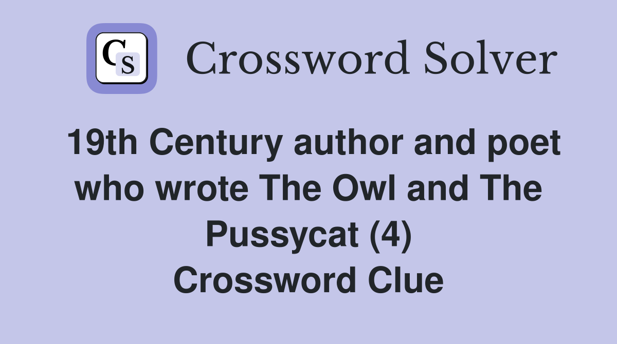 19th Century author and poet who wrote The Owl and The Pussycat (4