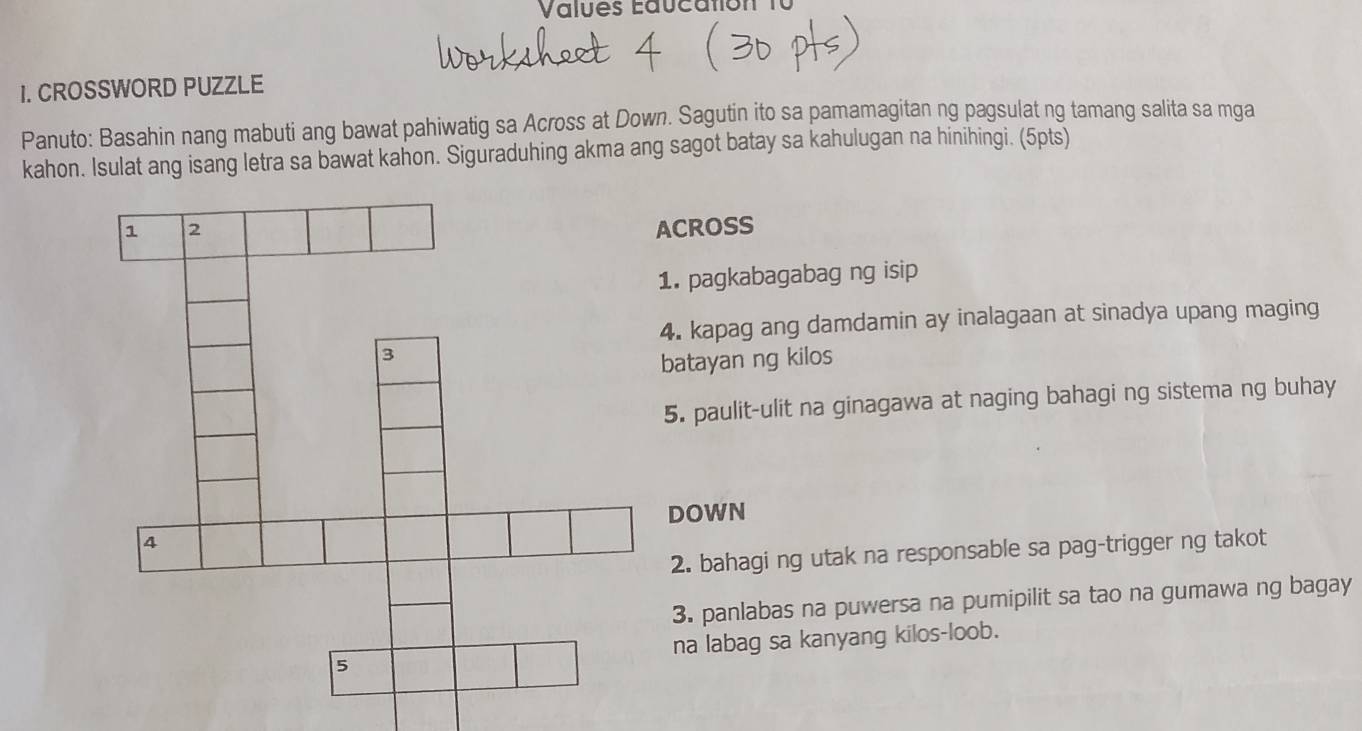 Solved: Values Éaucatión 1 CROSSWORD PUZZLE Panuto: Basahin nang