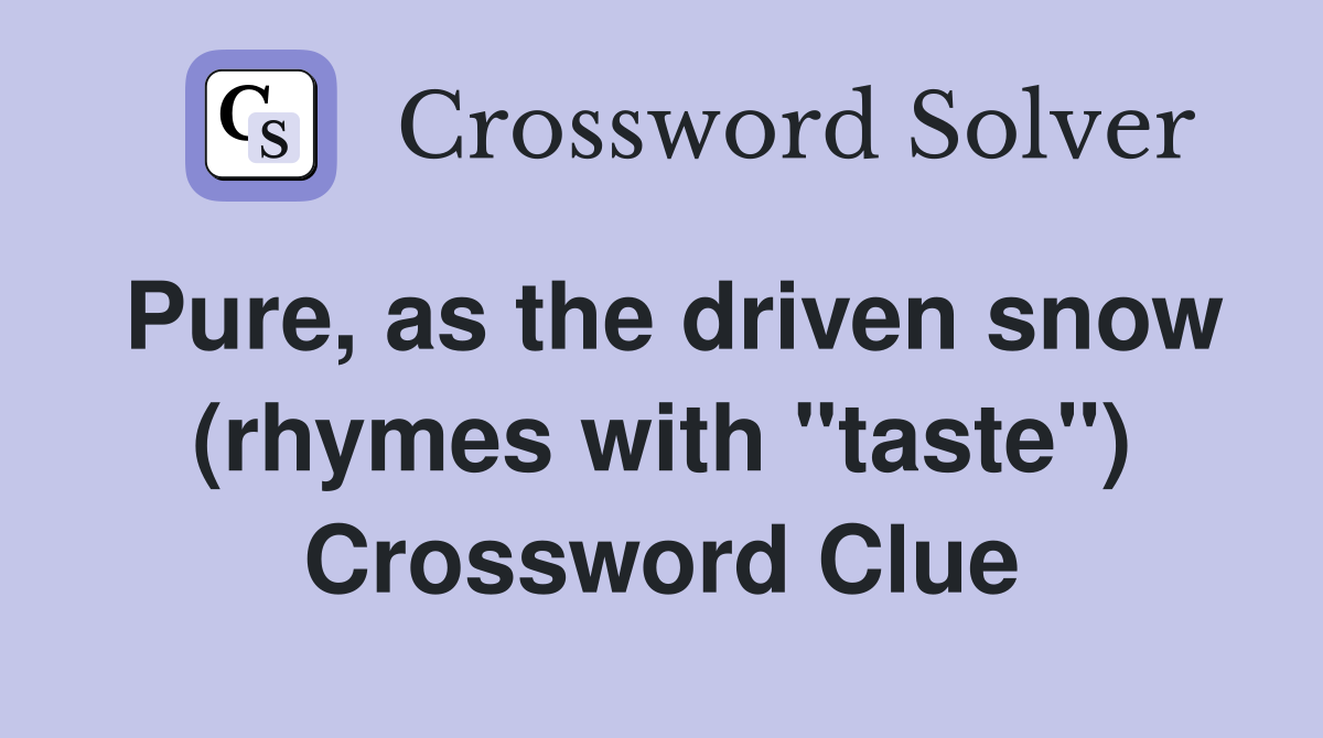 Pure as the driven snow (rhymes with quot taste quot ) Crossword Clue Answers