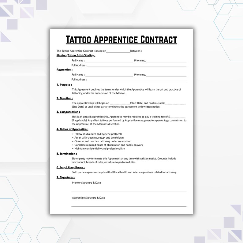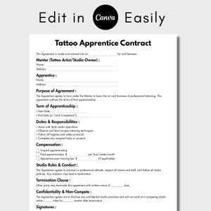 Tattoo Apprentice Contract Template Editable Tattoo Artist