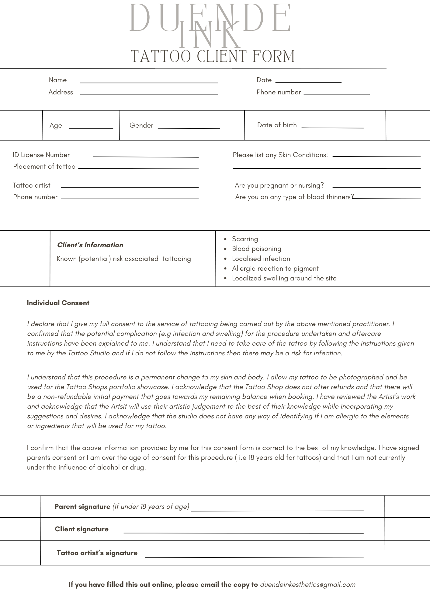 Consent Form DUENDE INK