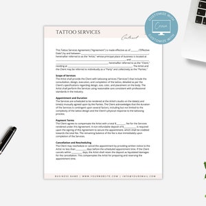 Editable Tattoo Artist Forms Bundle Tattoo Contract Template Tattoo