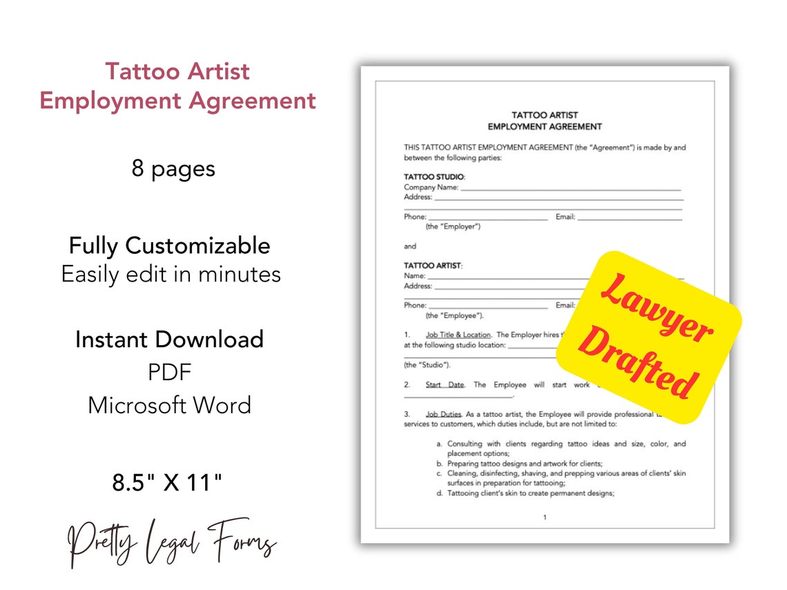 Tattoo Artist Contract Template Tattoo Studio Employee Forms Tattoo