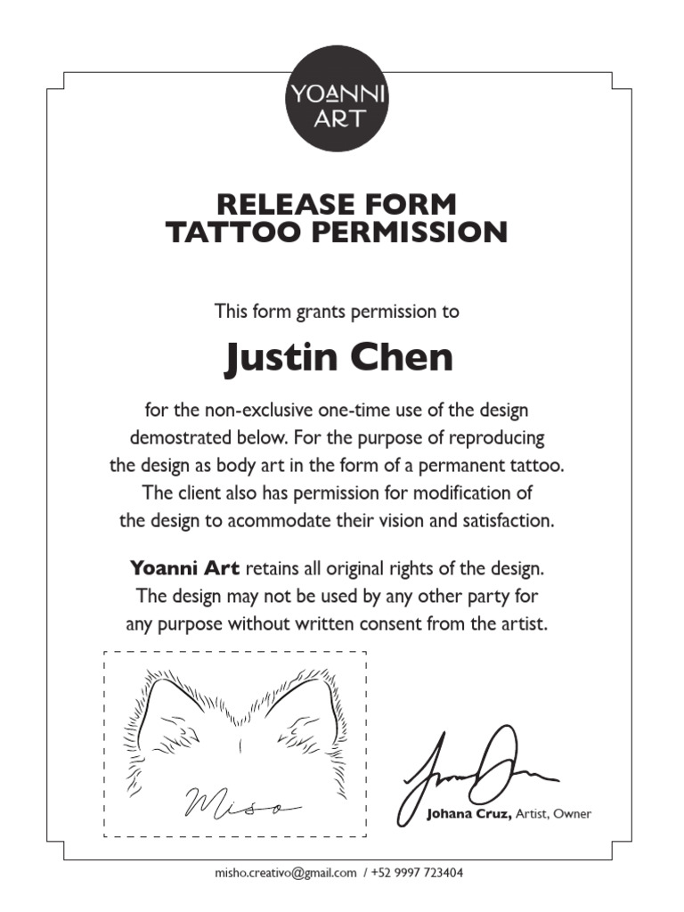 Tattoo Release Form MISO PDF Self Improvement