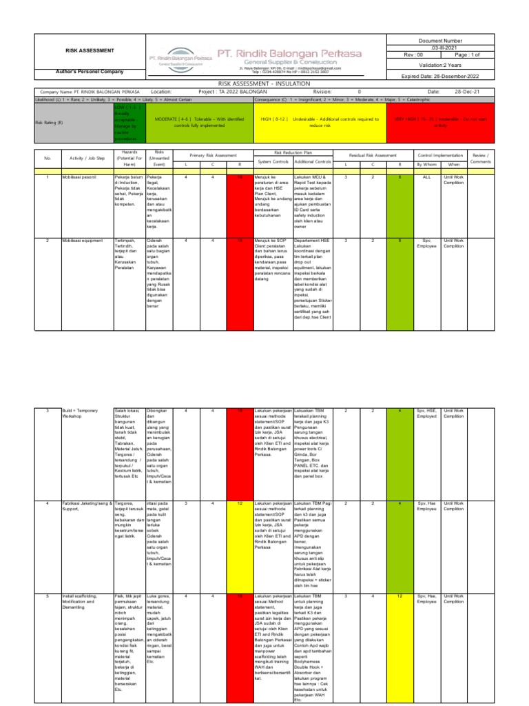 Process Risk Assessment Template Risk Assessment And Risk Treatment